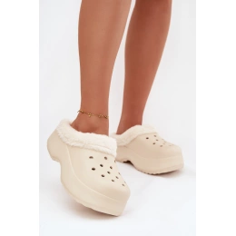 Béžové dámské pěnové pantofle Palvine s měkkým kožíškem uvnitř kombinují pohodlí, teplo a lehkost. Zateplení poskytuje příjemný pocit tepla při domácím nošení, zatímco lehká pěnová konstrukce umožňuje pohodlný krok po celém bytě. Protiskluzová podrážka dodává jistotu na hladkých površích.
