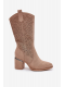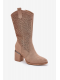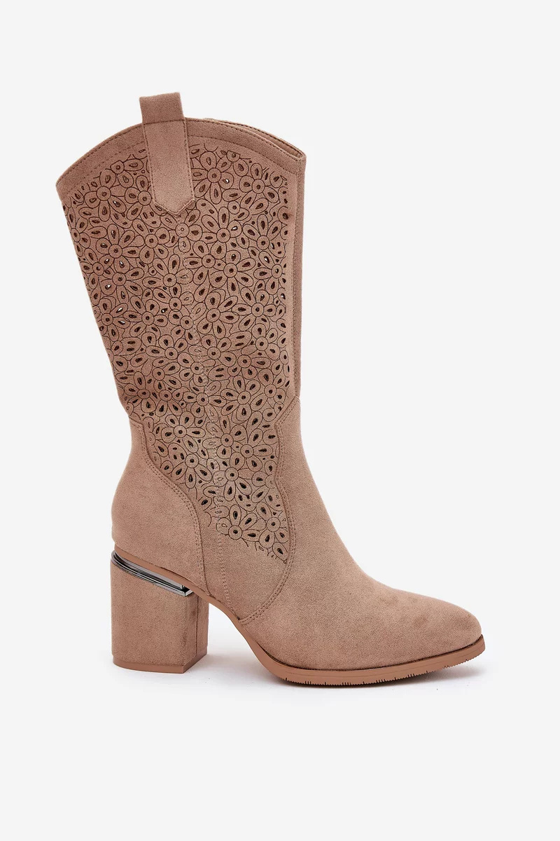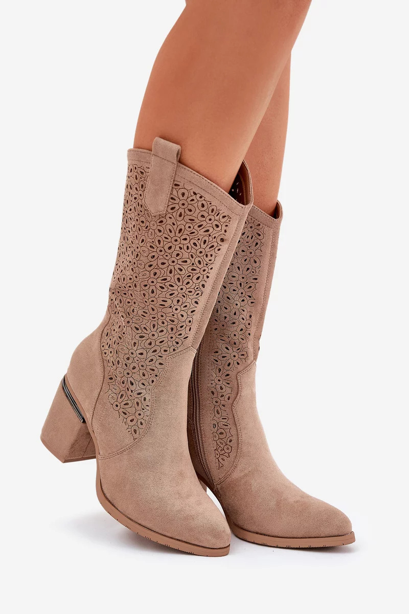 Stylové dámské kozačky S.Barski v béžovém odstínu sahají do poloviny lýtka a kombinují komfortní sloupkový podpatek s módním perforovaným designem. Kovbojský střih dodává botám originální a trendy vzhled, zatímco stabilní podpatek zajišťuje pohodlnou chůzi. Hladký eko kožený materiál je odolný a nadčasový.