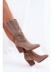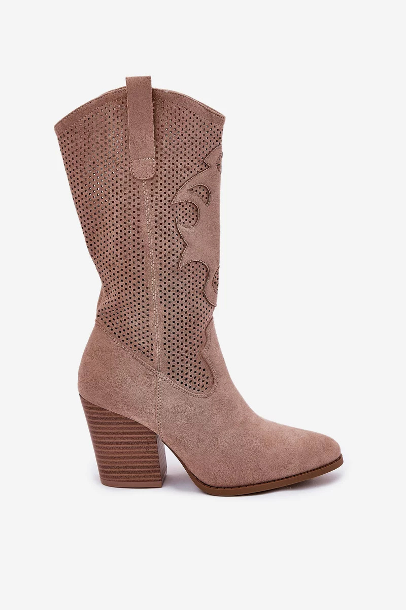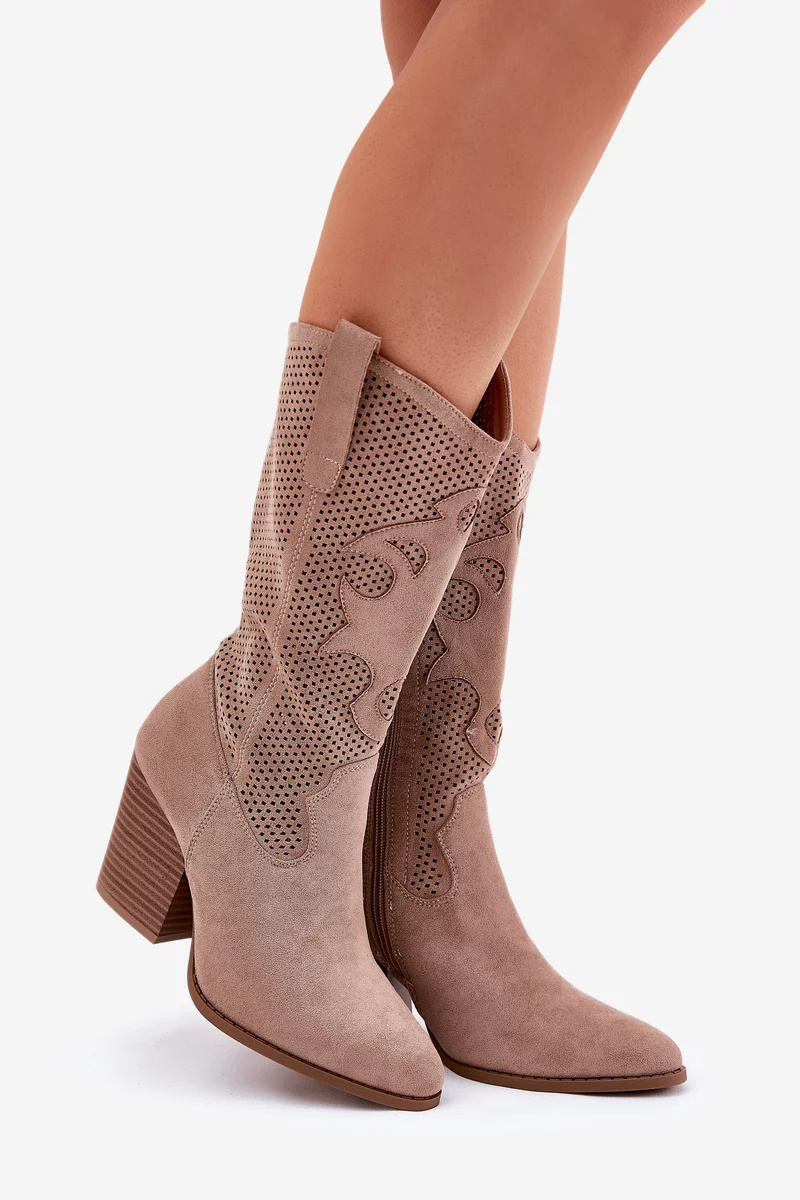 Stylové dámské kozačky S.Barski v béžovém odstínu kombinují komfortní sloupkový podpatek s módním perforovaným designem. Kovbojský střih dodává botám originální vzhled, zatímco stabilní podpatek zajišťuje pohodlnou chůzi. Hladký eko kožený materiál je odolný a elegantní, vhodný pro každodenní nošení.