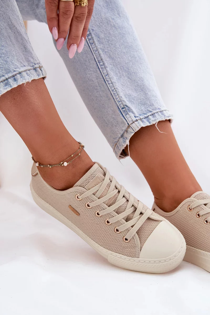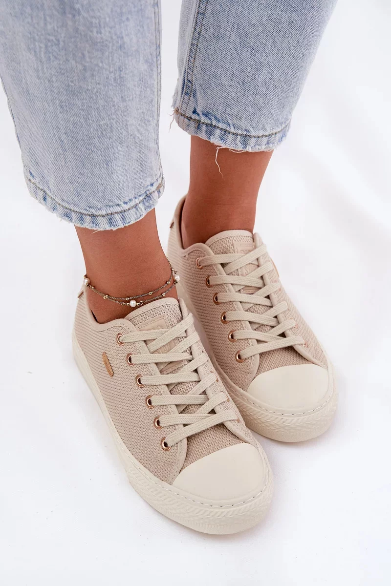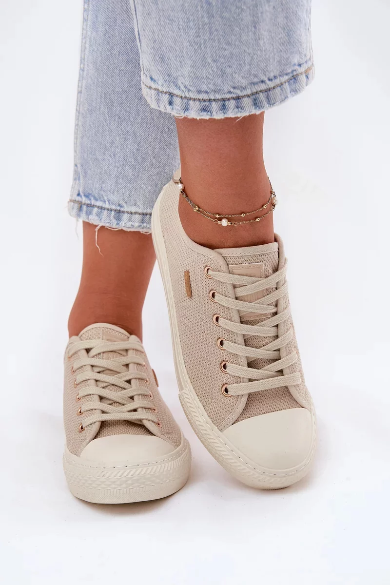 Lehké, prodyšné a nadčasové – dámské trampky Big Star v jemné béžové barvě představují ideální obuv pro každodenní nošení. Vyrobeny z kvalitního textilního materiálu, který zajišťuje maximální komfort i při vyšších teplotách. Klasický střih s gumovou podrážkou a šněrováním umožňuje snadné obutí a dobré přizpůsobení noze.