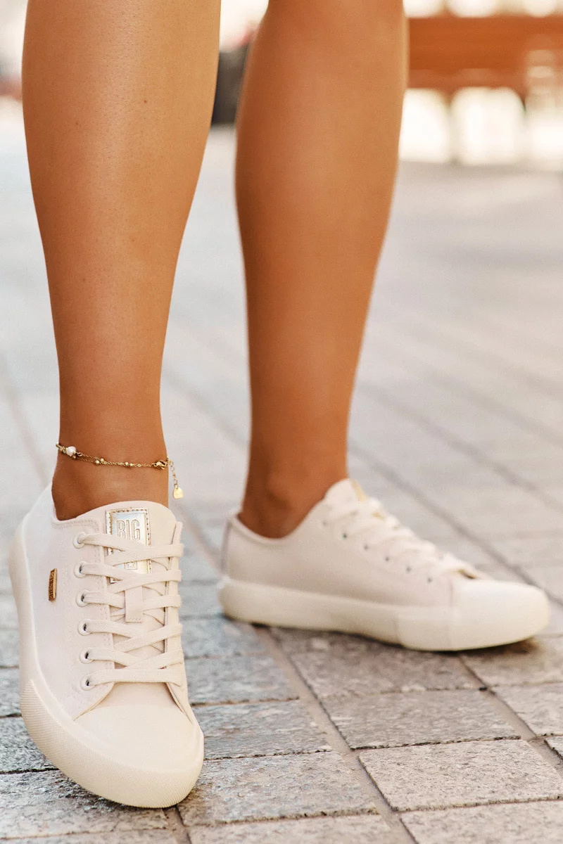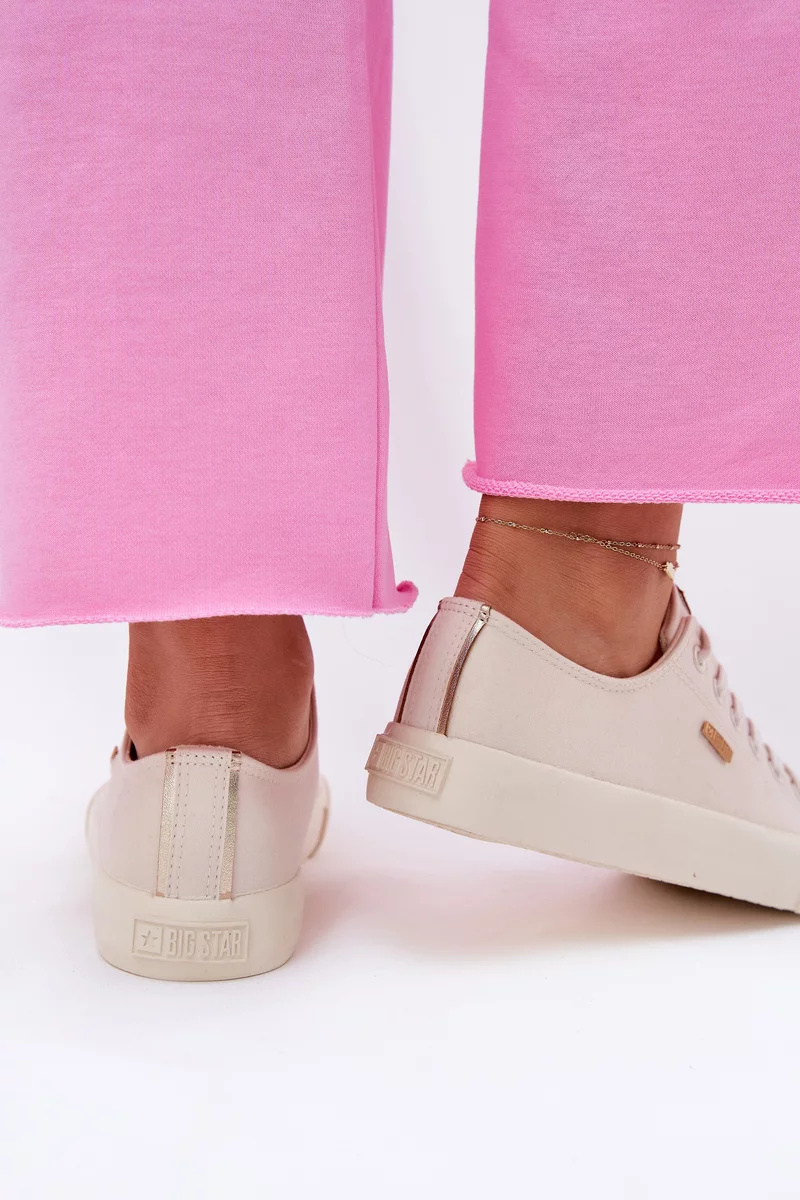 Dámské plátěné tenisky Big Star v jemném béžovém odstínu představují ideální spojení komfortu a přirozeného stylu. Díky lehké textilní konstrukci jsou skvělou volbou na teplejší dny a volnočasové aktivity. Klasické šněrování zajistí, že boty perfektně padnou a podrží nohu během celého dne.