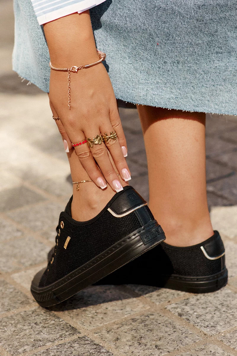 Dámské tenisky Big Star RR274765 v klasické černé barvě jsou skvělou volbou pro každodenní nošení. Nadčasový design v kombinaci s pohodlným střihem zajišťuje maximální komfort při chůzi, ať už se chystáte do města, do školy nebo na víkendový výlet.