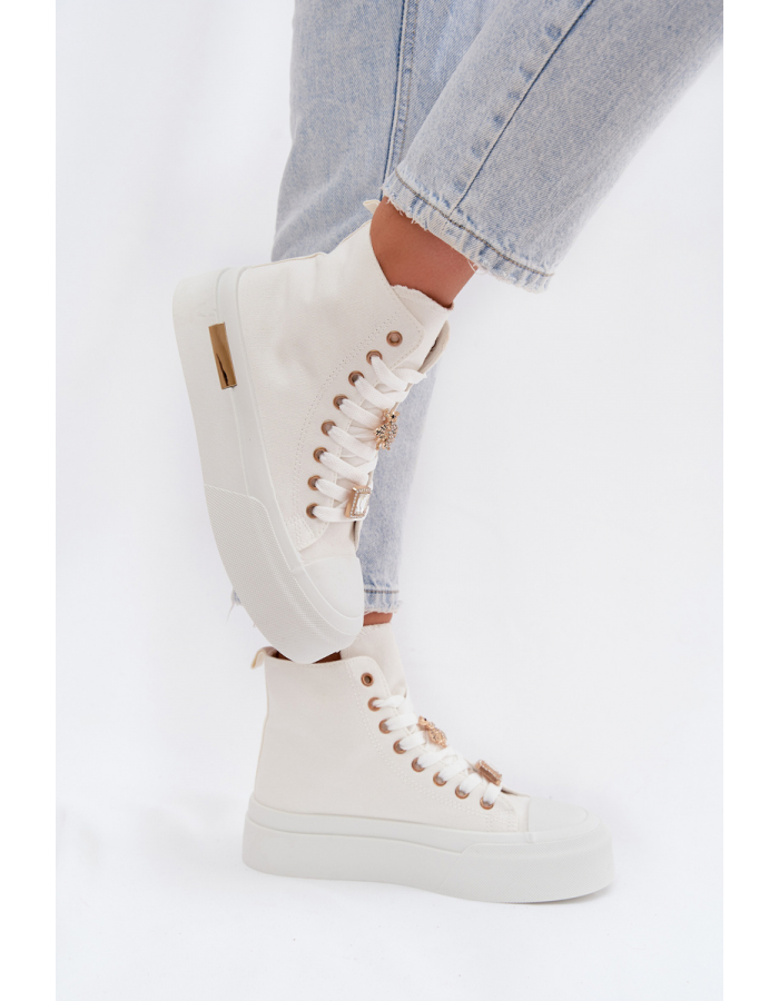 Dámské plátěné tenisky Gracella v bílém provedení na platformě zaujmou originálními ozdobnými připínkami, které dodávají obuvi hravý a moderní vzhled. Zvýšená podešev poskytuje pohodlný a stabilní došlap, zatímco nadčasová bílá barva umožňuje snadné kombinování s různými styly outfitů.