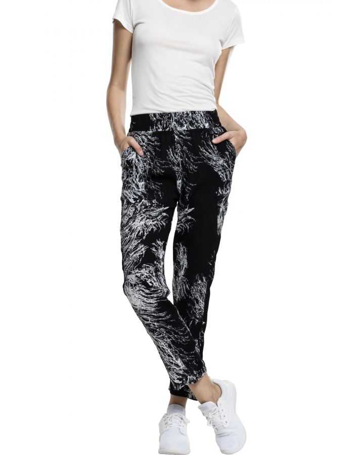 Dámské kalhoty AOP s elastickým pasem vpředu