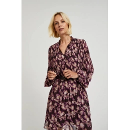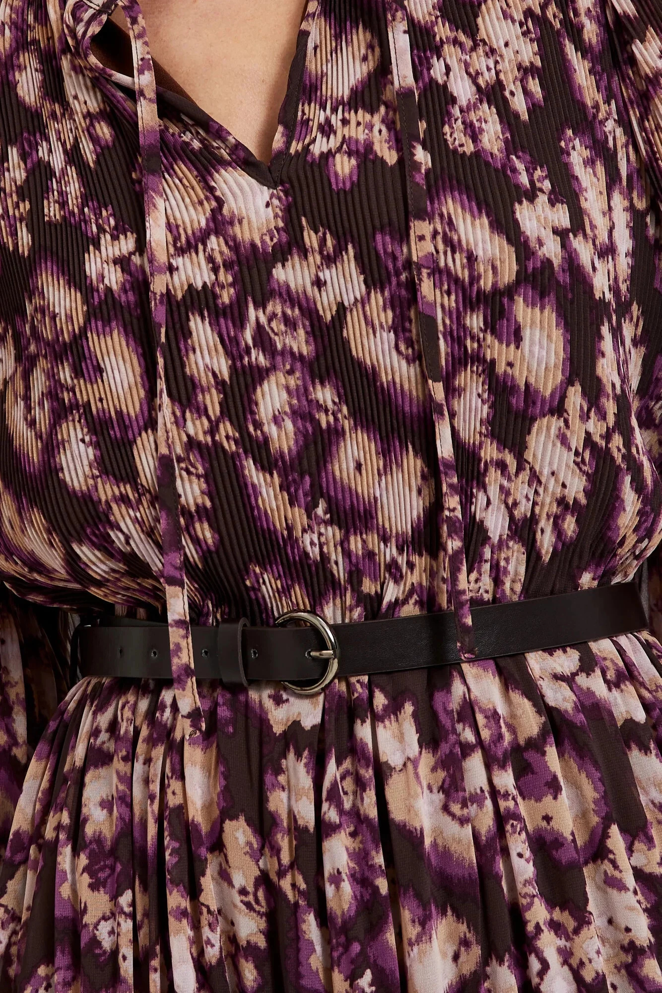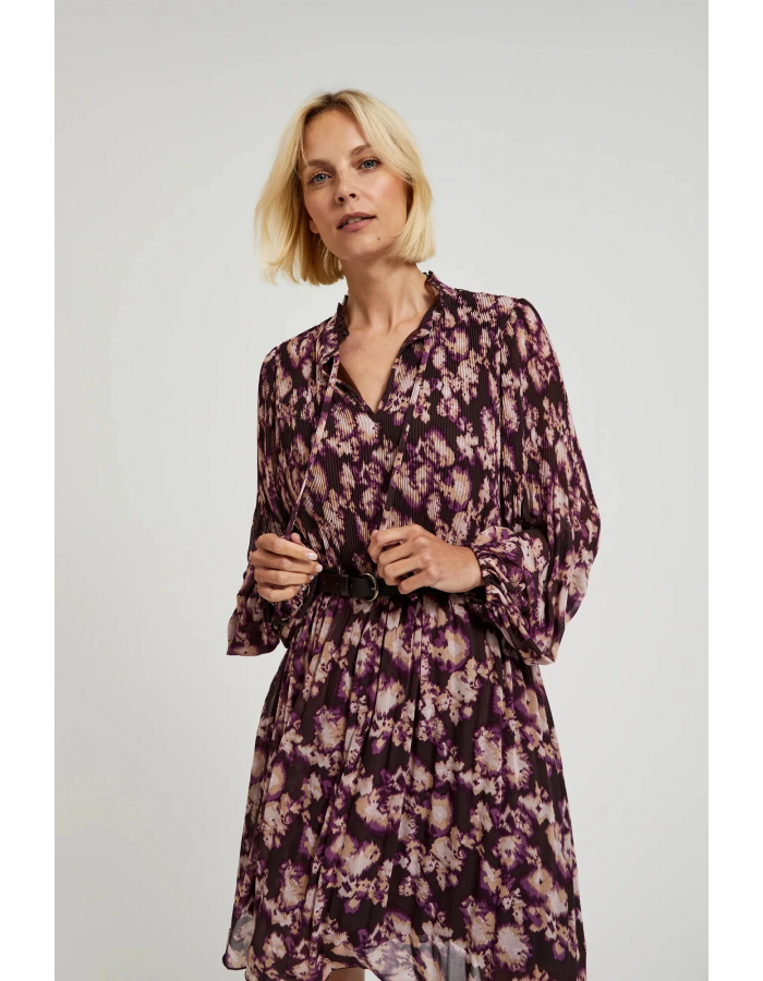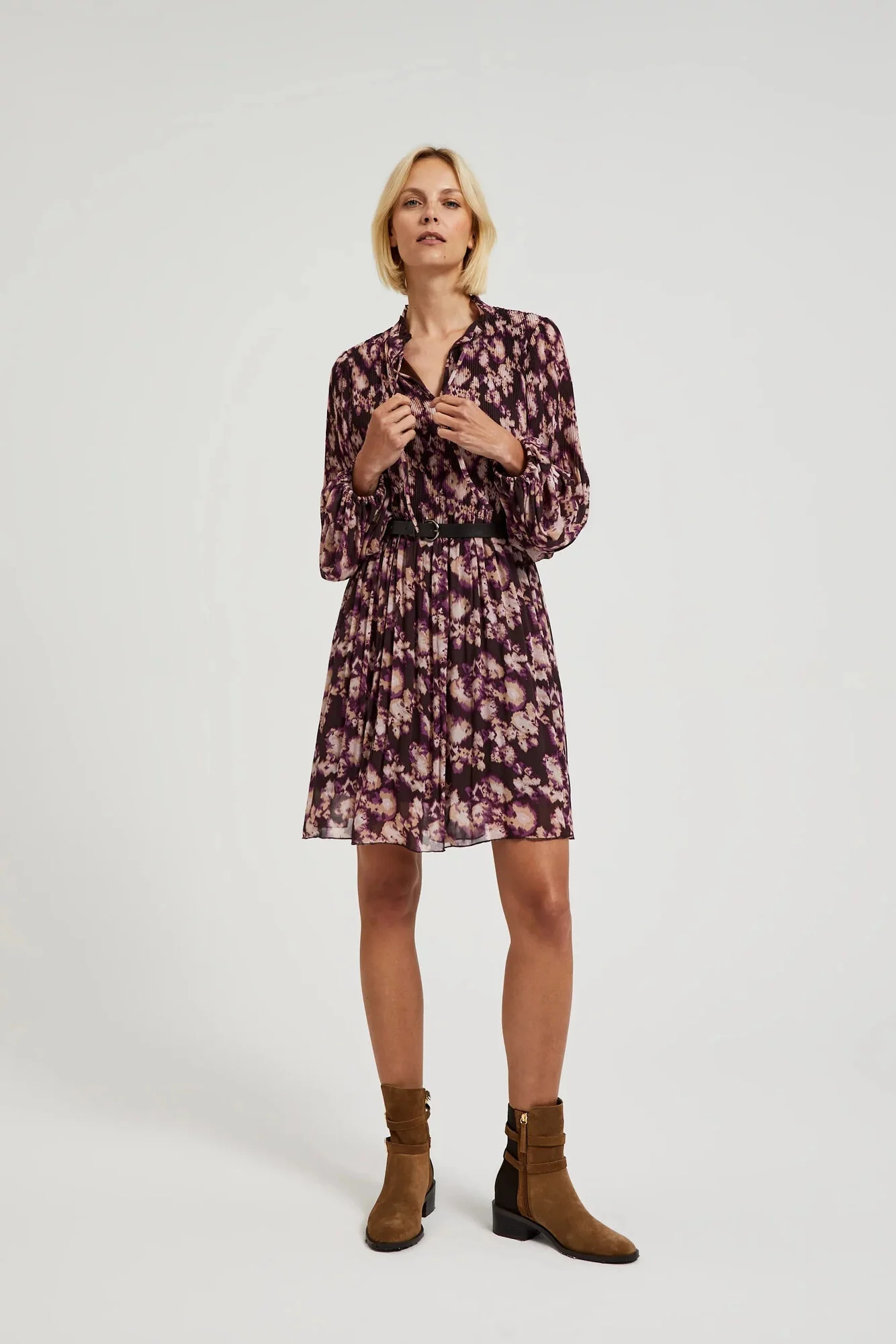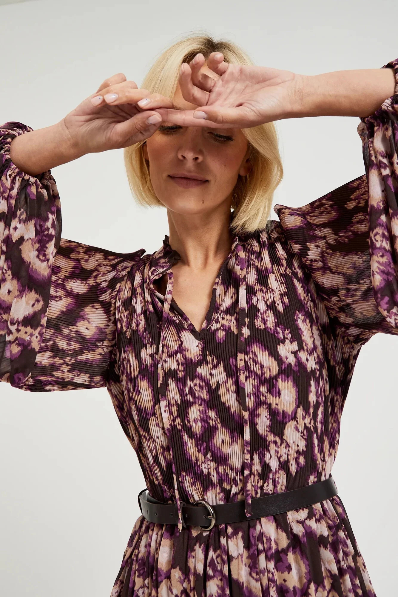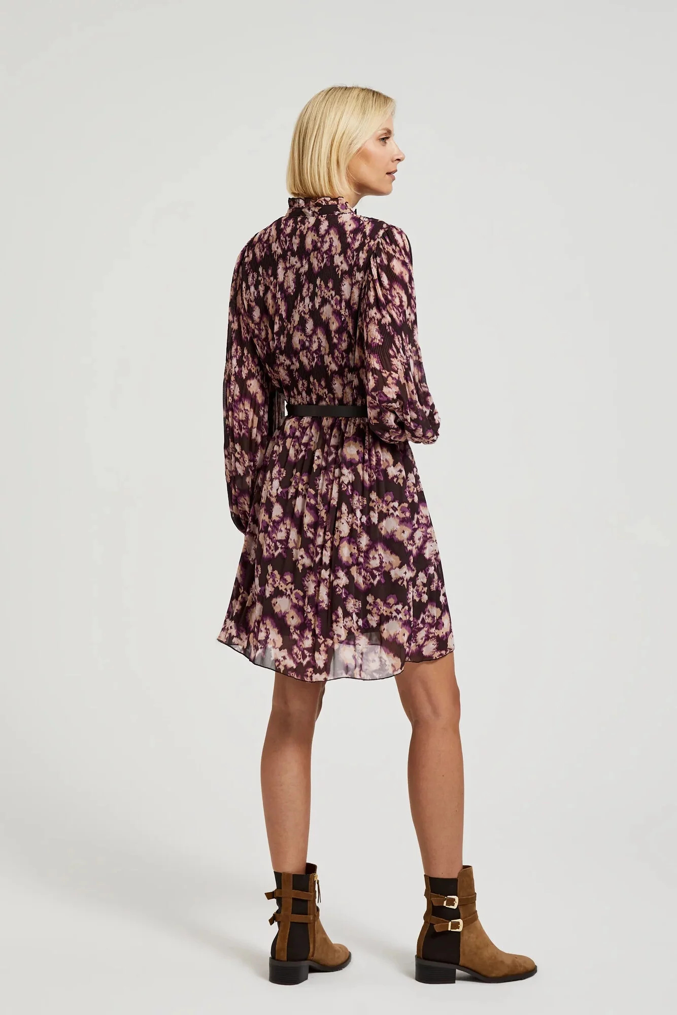 Dámské plisované šaty s páskem MOODO - hnědé Velikost: XXL