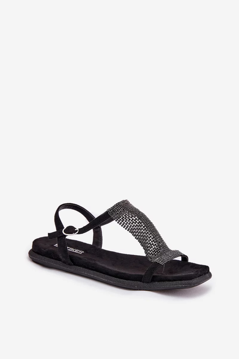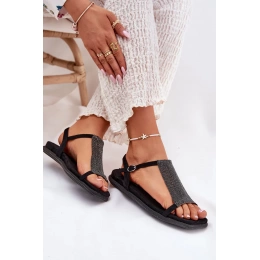 Černé sandály s krystalky krásně doplní jednoduché šaty nebo minimalistický outfit, kde vynikne jejich jemný třpyt.