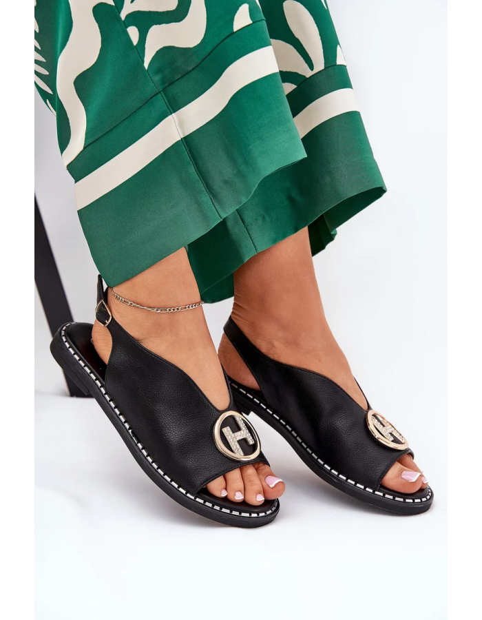 Černé elegantní sandály s ozdobou skvěle doplní letní šaty, sukně i kalhoty a dodají outfitu upravený vzhled.