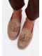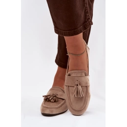 Béžové mokasíny s třásněmi krásně doplní outfit v přírodních a světlých tónech, jako je bílá, krémová nebo pastelové barvy.