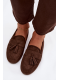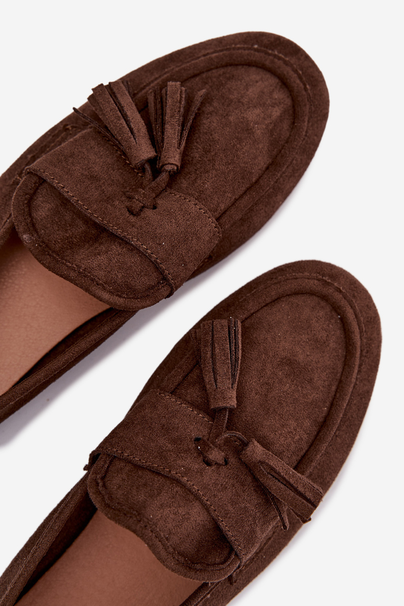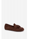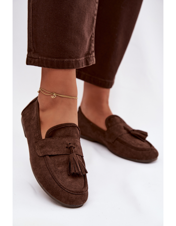Čokoládové ploché mokasíny krásně doplní outfit s kalhotami, džínami i sukní v přírodních nebo neutrálních tónech.