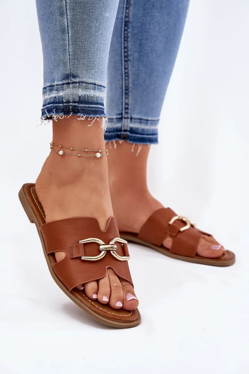 Dámské ploché pantofle v camel odstínu jsou elegantní a pohodlnou volbou pro teplé dny. Ozdobný detail na nártu dodává obuvi stylový akcent, zatímco plochá podešev zajišťuje přirozený a stabilní došlap. Díky univerzální barvě se pantofle snadno kombinují s letním oblečením.