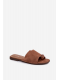 Hnědé pantofle z eko semiše krásně doplní outfit v béžových, krémových nebo olivových odstínech a vytvoří přirozený letní look.