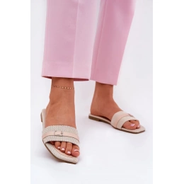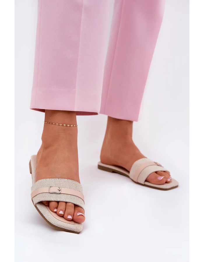 Béžové pantofle s páskem krásně doplní neutrální outfity — zkombinujte je s bílými nebo pastelovými kousky pro svěží a moderní letní look.