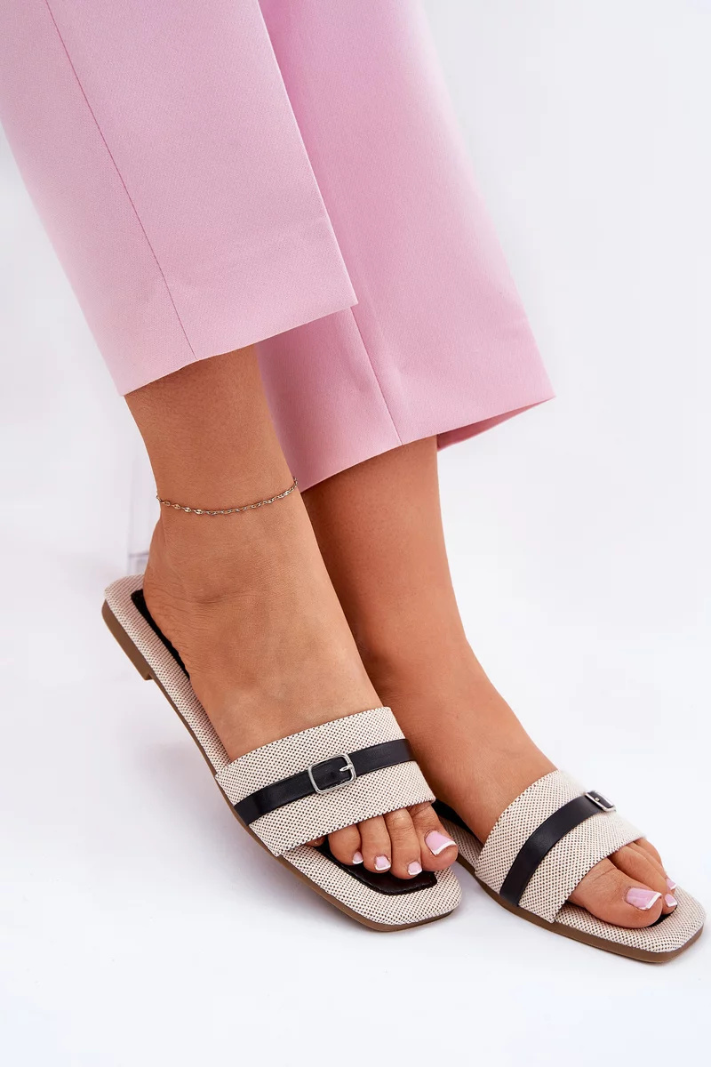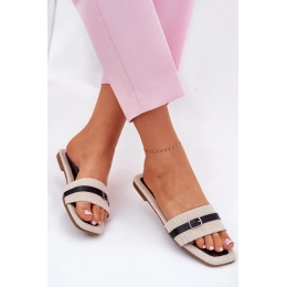 Béžovo-černé pantofle se skvěle kombinují s jednoduchým outfitem v neutrálních barvách a hodí se jak ke kalhotám, tak k šatům.