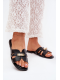 Dámské pantofle Kerenza v elegantní černé barvě kombinují pohodlí s moderním designem. Lehká a plochá konstrukce zajišťuje pohodlný a stabilní došlap, zatímco ozdobný zlatý detail na pásku dodává pantoflím stylový a luxusní akcent. Černé provedení je nadčasové a univerzálně se hodí k mnoha outfitům – od casual až po elegantní letní looky.