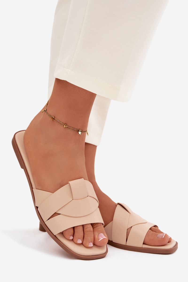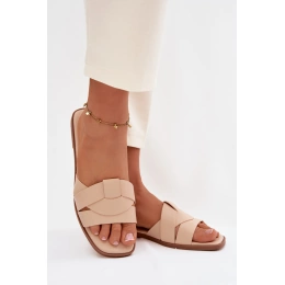 Béžové ploché pantofle skvěle doplní outfit v přírodních tónech, lněné šaty, sukně nebo světlé kalhoty.