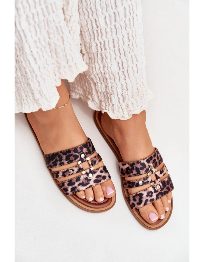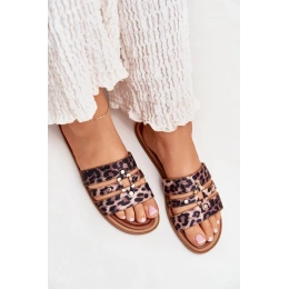 Dámské ploché pantofle Noroti v trendovém panterím designu s zlatým detailem spojují komfort s módním vzhledem. Plochá podešev poskytuje pohodlný a stabilní došlap po celý den, zatímco zlatý akcent dodává obuvi elegantní a stylový prvek. Pantterí vzor působí originálně a dodá vašemu outfitu energický a výrazný look, který je ideální pro volnočasové i městské nošení.