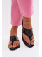 Dámské pantofle Lavessa v černém provedení představují elegantní a praktickou letní obuv s jemným zlatým detailem. Svršek z eko kůže působí upraveně a moderně, zatímco plochá podešev zajišťuje pohodlí při celodenním nošení. Nadčasová černá barva v kombinaci se zlatým akcentem dodává pantoflím sofistikovaný vzhled vhodný pro každodenní outfity.