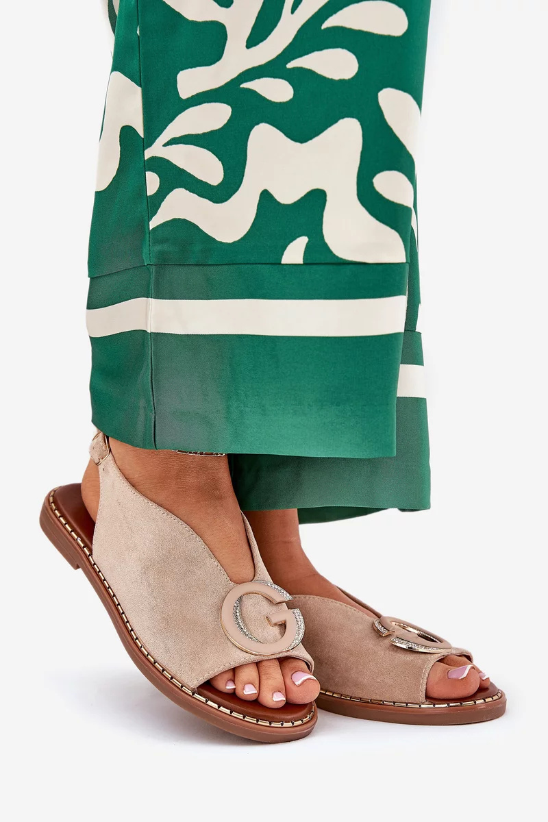 Béžové sandály s ozdobou krásně doplní letní šaty, sukně i kalhoty v přírodních a světlých tónech.