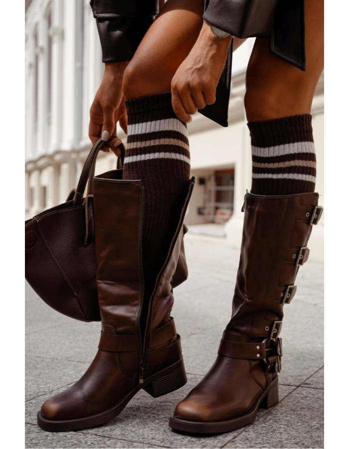 Dámské podkolenky v žebrovaném provedení s proužky jsou pohodlným a zároveň stylovým doplňkem pro každodenní nošení. Žebrování pomáhá, aby dobře seděly na noze, a proužky dodají outfitu sportovně-městský detail. Čokoládová barva působí teple a elegantně, snadno se kombinuje s přírodními i neutrálními tóny a podkolenky se hodí k teniskám, kotníkové obuvi i k vyšším botám.