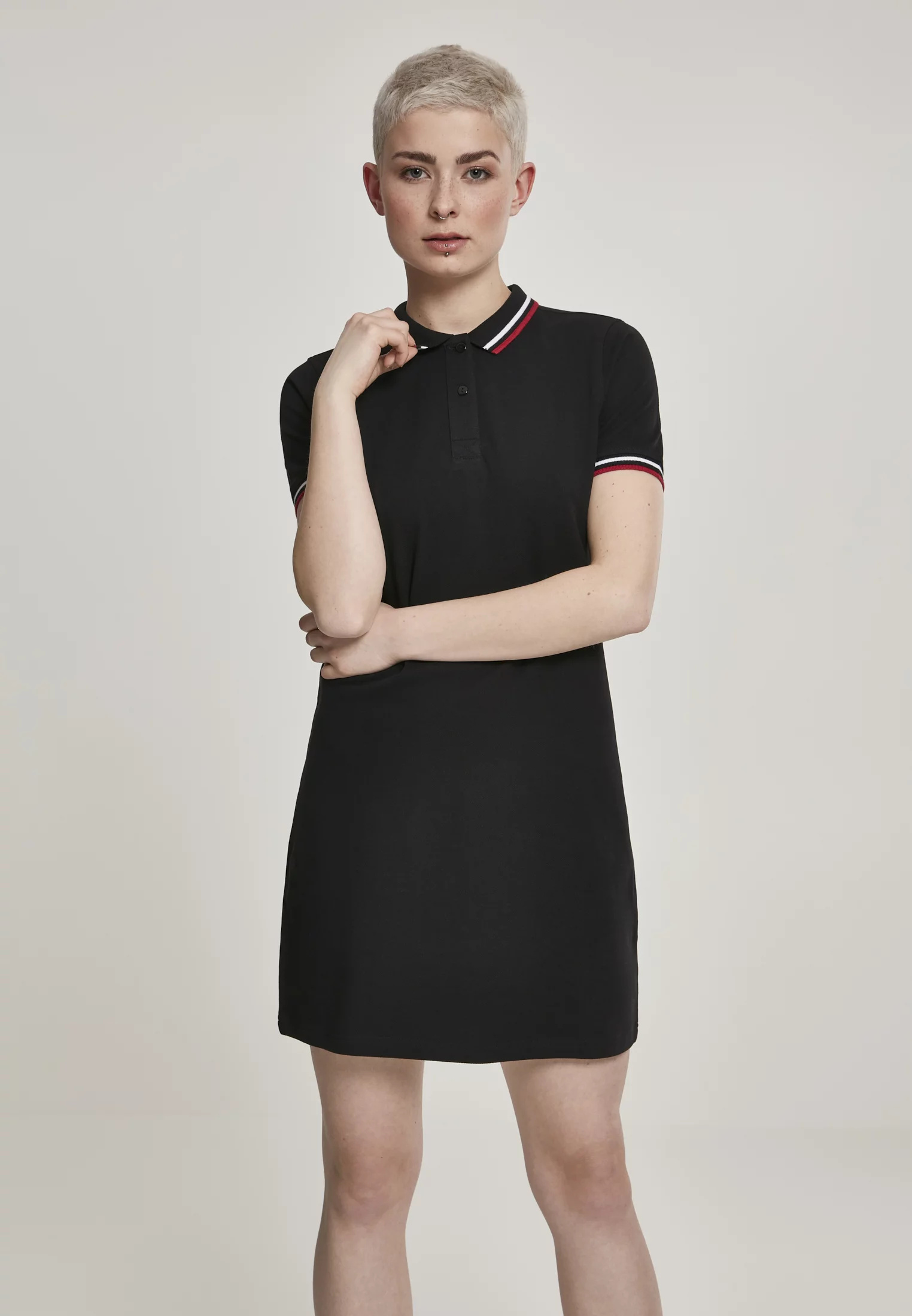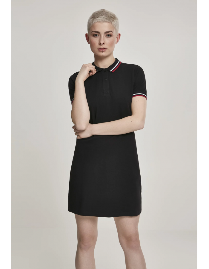 Tyto jednoduché piké polo šaty kombinují sportovnost a styl. Příjemný střih a klasické prvky polo, jako je límec a kontrastní manžety, zajistí, že budete vždy vypadat dobře - zaručeně. Pěknými detaily jsou knoflíková léga a pruhy v kontrastních barvách na límci a manžetách. Šaty pro stylový vzhled, bez ohledu na to, jaké jsou teploty.