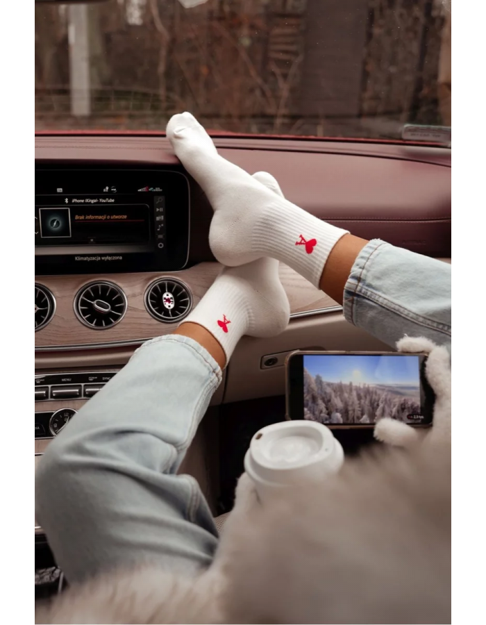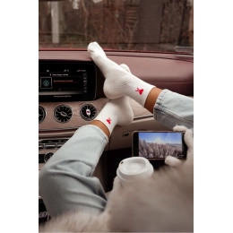 Elegantní dámské ponožky v ecru odstínu s jemným designem Amor. Měkký a prodyšný materiál zajišťuje pohodlí a komfort při celodenním nošení, vhodné jak do domácí obuvi, tak i k teniskám či balerínám.