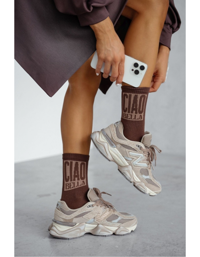 Čokoládové dámské ponožky CIAO BELLA jsou měkké, pohodlné a vhodné pro každodenní nošení. Kvalitní materiál poskytuje příjemný pocit po celý den a dobrou prodyšnost. Elegantní design s decentním nápisem dodává ponožkám moderní a stylový vzhled.