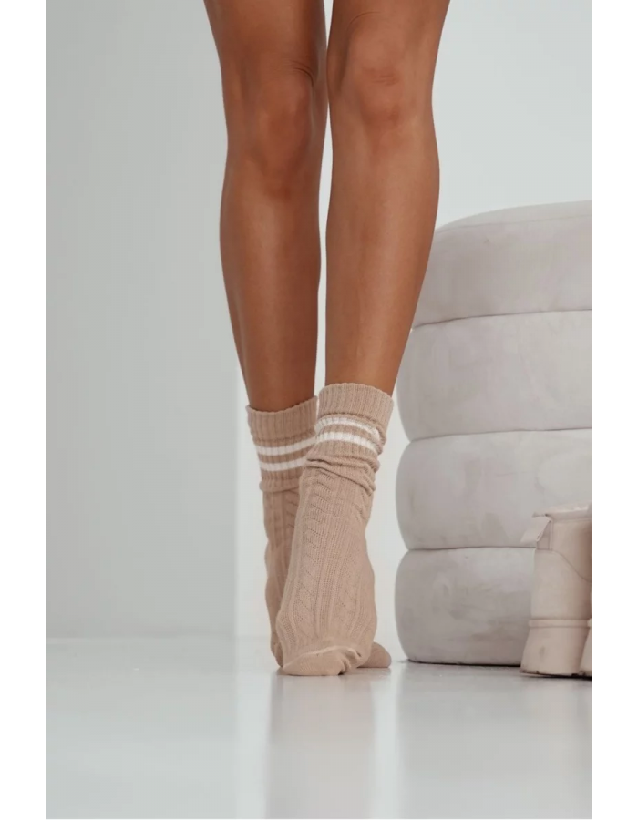Dámské Ponožky Copánkový Vzor s Pruhy Béžové 37-41