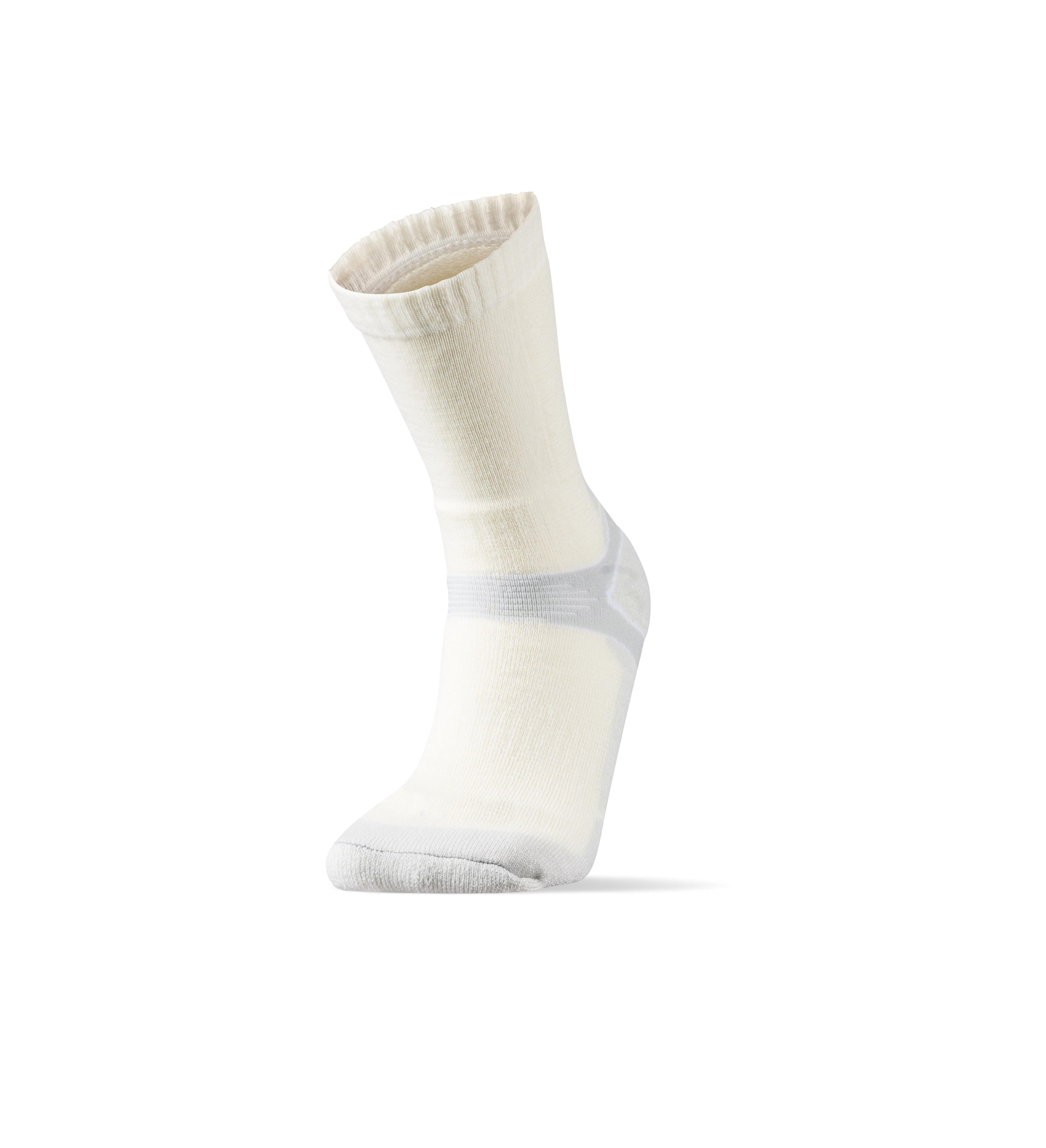 Vysoké technicky řešené sportovní ponožky, které poskytují maximální komfort při turistice i v náročných podmínkách. Fixační zóny přes nárt a kolem kotníku drží ponožku přesně na svém místě. Odvod vlhkosti, odolnost vůči zápachu, pevnost a pružnost zajistí kombinace použitých vysoce kvalitních materiálů. Zesílená oblast špičky a paty zajišťuje ochranu chodidel. Navrženo a ušito v České republice z renomované Merino Schoeller příze.