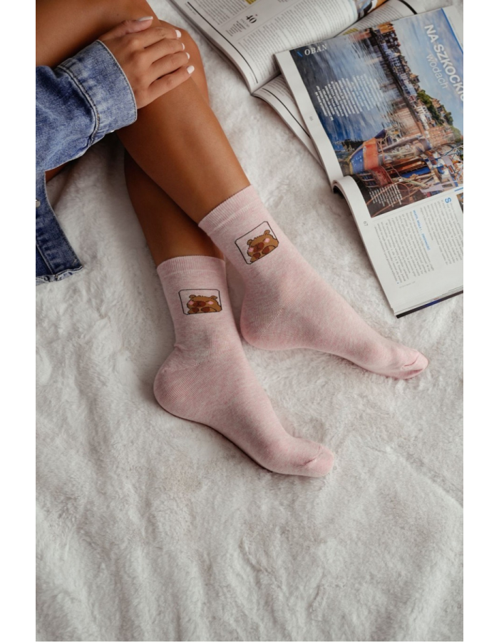 Růžové dámské ponožky s motivem kapibary jsou měkké, pohodlné a ideální pro každodenní nošení. Kvalitní materiál zajišťuje příjemný pocit po celý den a dobrou prodyšnost.