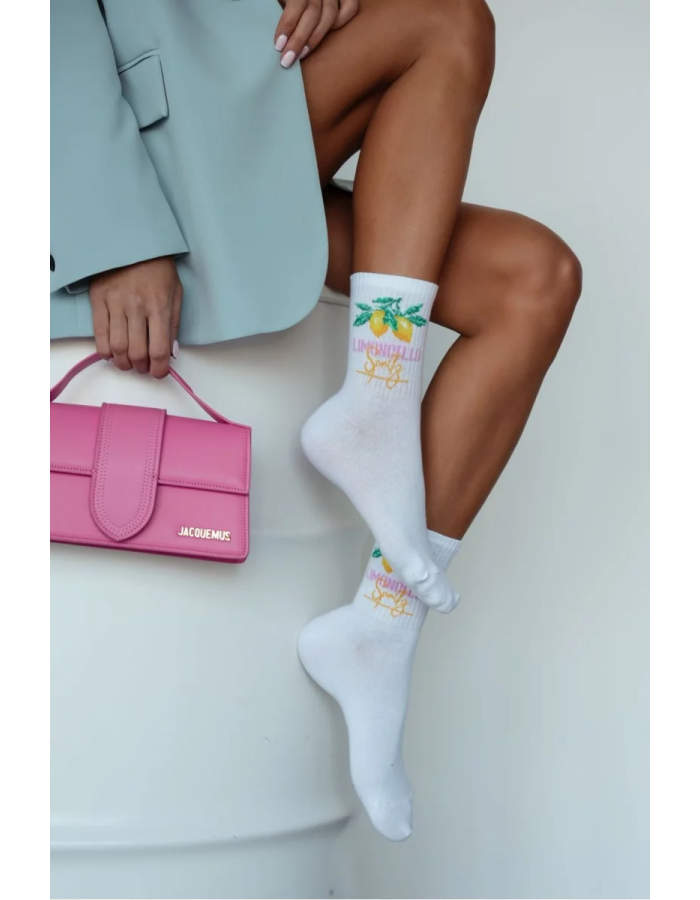 Dámské ponožky LIMONCELLO v bílé barvě jsou stylovým doplňkem pro každodenní nošení. Nápis LIMONCELLO dodá outfitu hravý, letně laděný detail, který vynikne v teniskách i v městské obuvi. Díky univerzální bílé barvě se ponožky snadno kombinují a hodí se do práce i na volný čas.