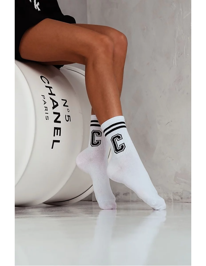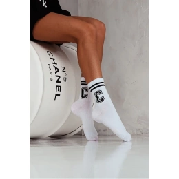 Dámské Ponožky S Pruhy A Písmenem C Bílo-Černé