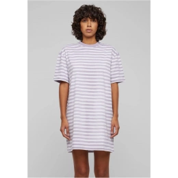 Dámské pruhované šaty oversized bílé/fialové Velikost: L