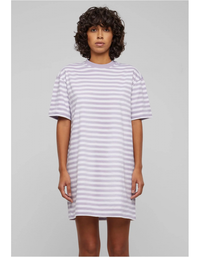 Zažijte eleganci bez námahy s dámskými oversized pruhovanými tričkovými šaty od Urban Classics, dokonalou kombinací pohodlí a stylu. Tyto ležérní dámské tričkové šaty jsou nezbytným kouskem do vašeho šatníku, který kombinuje ležérnost a módní vědomí. Uvolněný střih a krátký střih zajišťují pohodlné nošení, zatímco kulatý výstřih dodává šatům klasický nádech. Tyto šaty jsou vyrobeny z měkké bavlny, takže se pohodlně nosí po celý den. Ať už na pohodový den doma, na procházku po městě nebo jako součást neformálního večerního outfitu, tyto tričkové šaty jsou všestrannou a stylovou volbou.