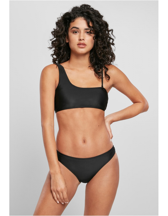 Tílko s výrazným charakterem a zárukou upoutání pozornosti. Bandeau top má asymetrický střih a má také různě široká ramínka, z nichž jedno je odnímatelné, takže se snadno obléká a svléká. Kalhotky se vyznačují atraktivním brazilským střihem. A krásné bikiny jsou navíc šetrné k životnímu prostředí, protože jsou vyrobeny z recyklovaného polyesteru.