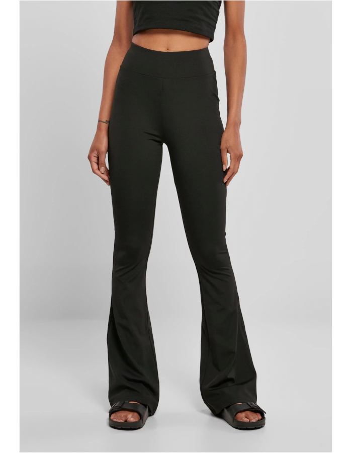 Ležérní a módní městský kousek: dámské legíny sedí těsně ke kolenům a odtud se rozšiřují s elegantním rozevřením. Vybavena vysokým elastickým pasem a vyrobena z hladkého materiálu z recyklovaného polyesteru a elastanu, je zajištěno ideální pohodlí při nošení.