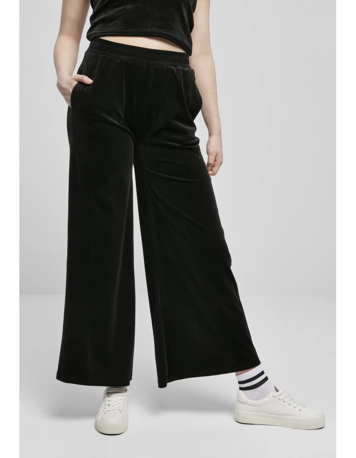 Dámské rovné sametové tepláky s vysokým pasem černé M
