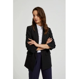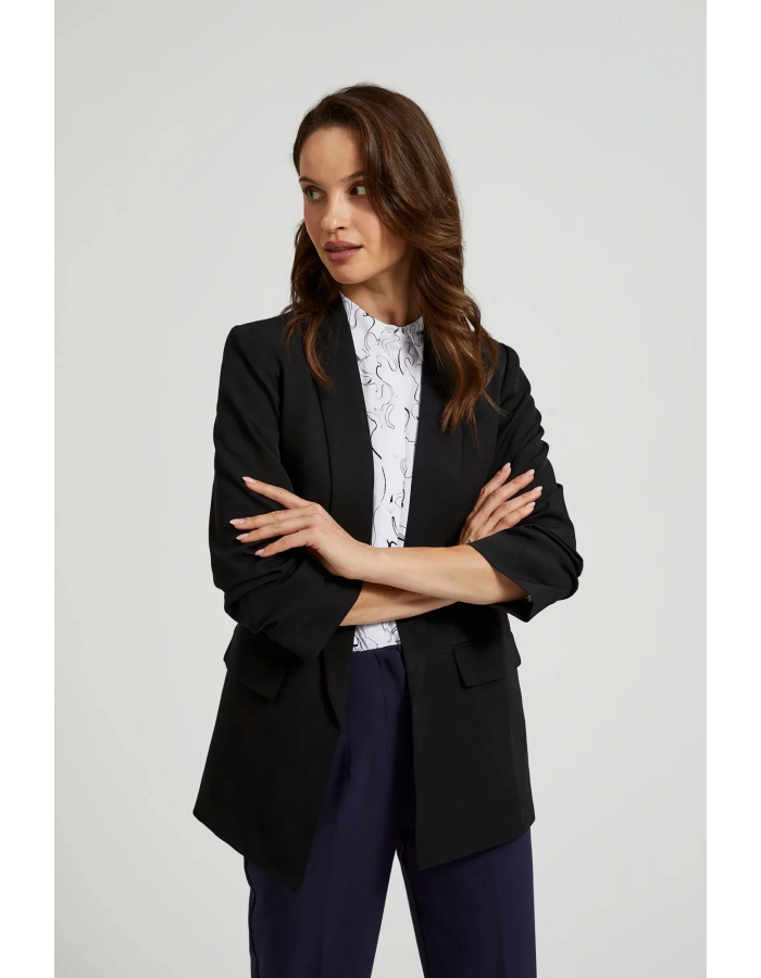 95% POLYESTER, 5% ELASTAN Černé sako bez vzoru je ideálním doplňkem do tvého šatníku. Vyrobena z hladkého polyesteru, má elegantní klopy, podšívku, nařasené rukávy a praktické kapsy. Rukávy jsou délky 3/4, což jí dodává výjimečné kouzlo. Toto sako se bude skvěle hodit jak na každodenní nošení, do práce, tak i na speciální příležitosti. Můžeš ji zkombinovat jak s elegantními kalhotami, tak s džíny, čímž vytvoříš různé stylizace. Díky univerzálnímu designu bude pasovat k mnoha prvkům Tvého šatníku.
