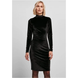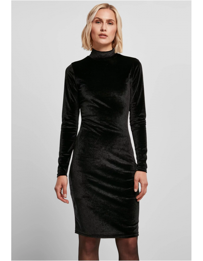 Vzhled těchto dámských šatů ženského střihu je definován jemnou, jemně třpytivou strečovou sametovou látkou a jasným tvarem. Navíc má rolák a dlouhé rukávy a končí v úrovni kolen. Střih je pohodlný a přiléhavý. Malé procento elastanu zajišťuje skvělé pohodlí při nošení