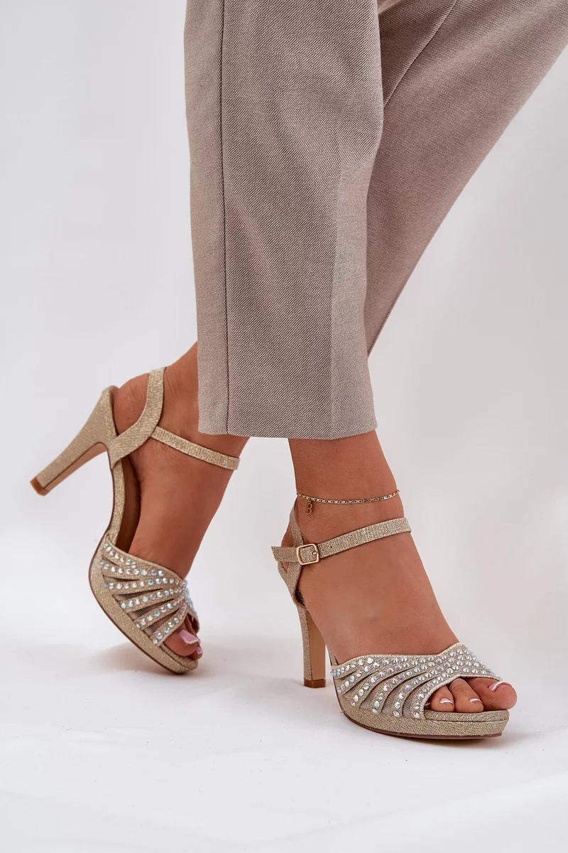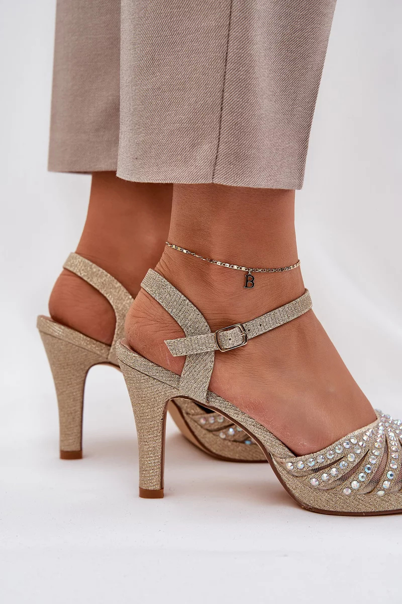 Dámské sandály D&A ve zlatém provedení představují luxusní obuv na jehlovém podpatku, která zaujme kombinací elegantního zdobení a třpytivého brokátového povrchu. Jehlový podpatek zvýrazňuje ženskou siluetu a dodává sandálům slavnostní charakter. Zlatá barva působí výrazně, ale zároveň vkusně a je ideální volbou pro výjimečné příležitosti.