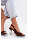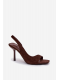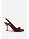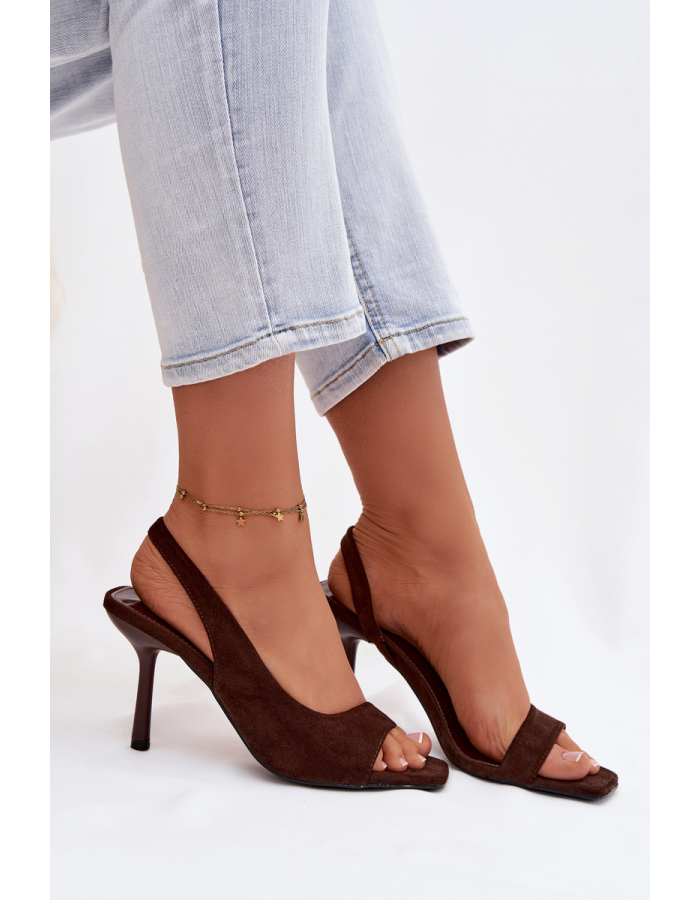Čokoládové sandály na jehlovém podpatku krásně doplní šaty v béžových, krémových nebo černých tónech a dodají outfitu elegantní hloubku.