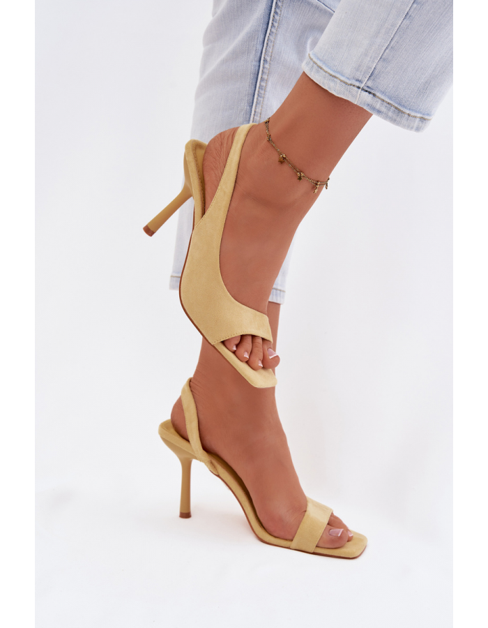 Žluté sandály na jehlovém podpatku krásně vyniknou v kombinaci s jednoduchými šaty v neutrálních barvách a dodají outfitu originální charakter.