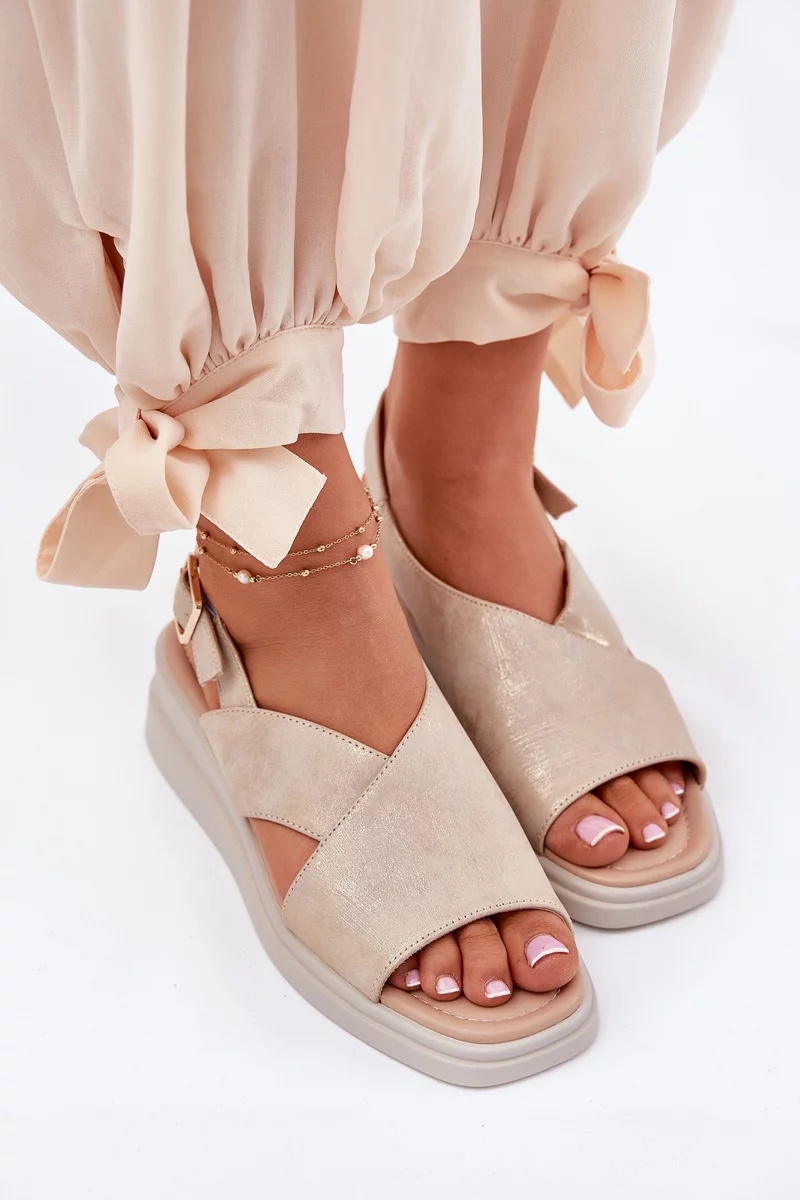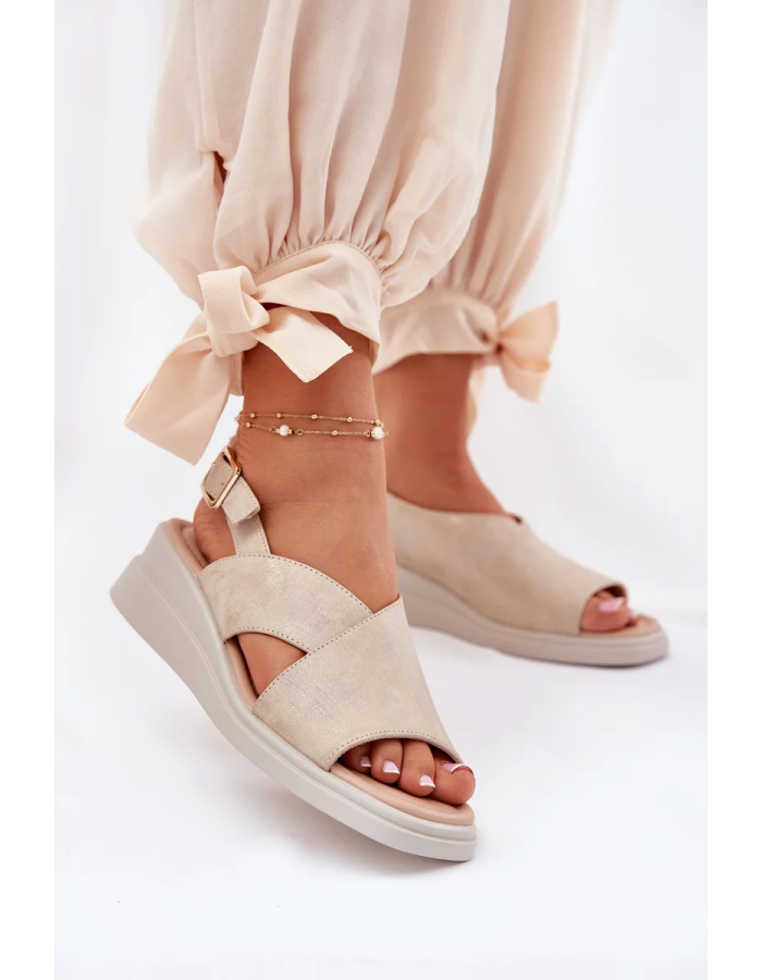 Dámské sandály Quilara na klínu jsou elegantní a pohodlnou volbou pro teplé dny. Zlaté provedení z eko kůže dodává obuvi luxusní a módní vzhled, zatímco klínová podešev opticky prodlužuje nohy a přispívá k pohodlnému došlapu. Sandály se snadno kombinují s letními outfity od šatů až po kalhoty.