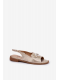 Zlaté sandály krásně doplní neutrální outfity – zkombinujte je s bílými šaty nebo béžovými kalhotami pro svěží a elegantní letní look.