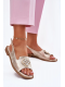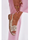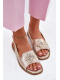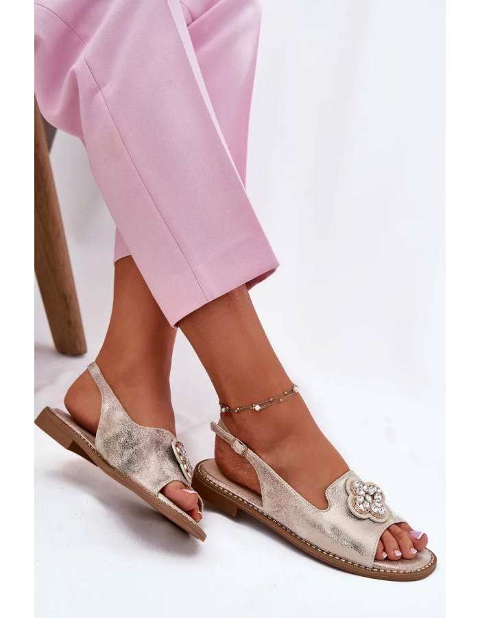 Elegantní dámské sandály S.Barski v lesklém zlatém provedení jsou ideální volbou pro teplé dny, kdy chcete spojit pohodlí s módním vzhledem. Nízký podpatek poskytuje stabilní a komfortní došlap, zatímco dekorativní detail na pásku dodává obuvi zajímavý a stylový akcent. Zlatá barva působí slavnostně i univerzálně, takže tyto sandály snadno doplní jak denní, tak večerní outfity.