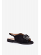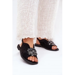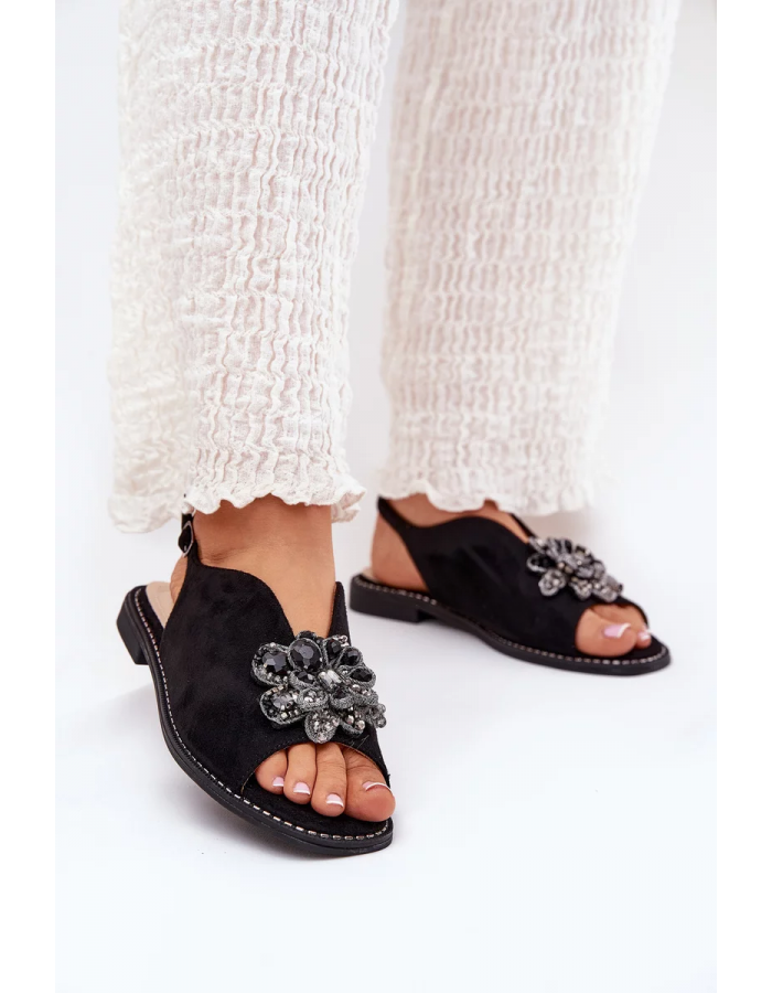 Černé sandály s ozdobou skvěle doplní neutrální outfity – zkombinujte je s bílými šaty nebo sukní a jemnými doplňky pro elegantní letní vzhled.