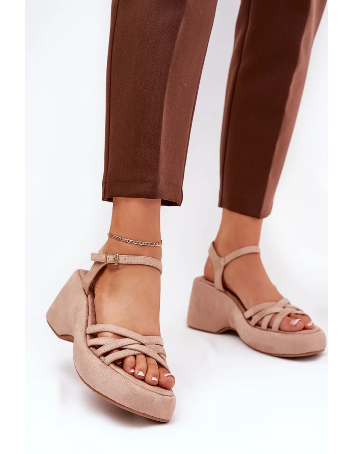 Dámské sandály Nendal v béžovém provedení zaujmou elegantní kombinací platformy a klínového podpatku, která opticky prodlužuje siluetu a zároveň zajišťuje pohodlí při chůzi. Svršek z eko semiše působí jemně a stylově, zatímco neutrální béžová barva se snadno kombinuje s letními outfity. Model je ideální volbou pro ženy, které hledají komfortní, ale zároveň elegantní letní obuv.