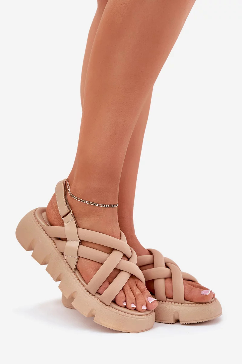Béžové sandály na platformě s pásky krásně doplní letní šaty, sukně i kalhoty v přírodních a světlých tónech.