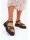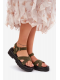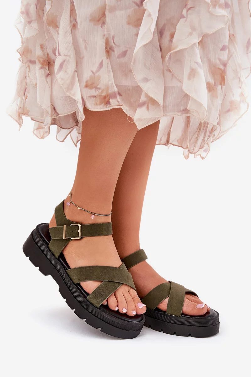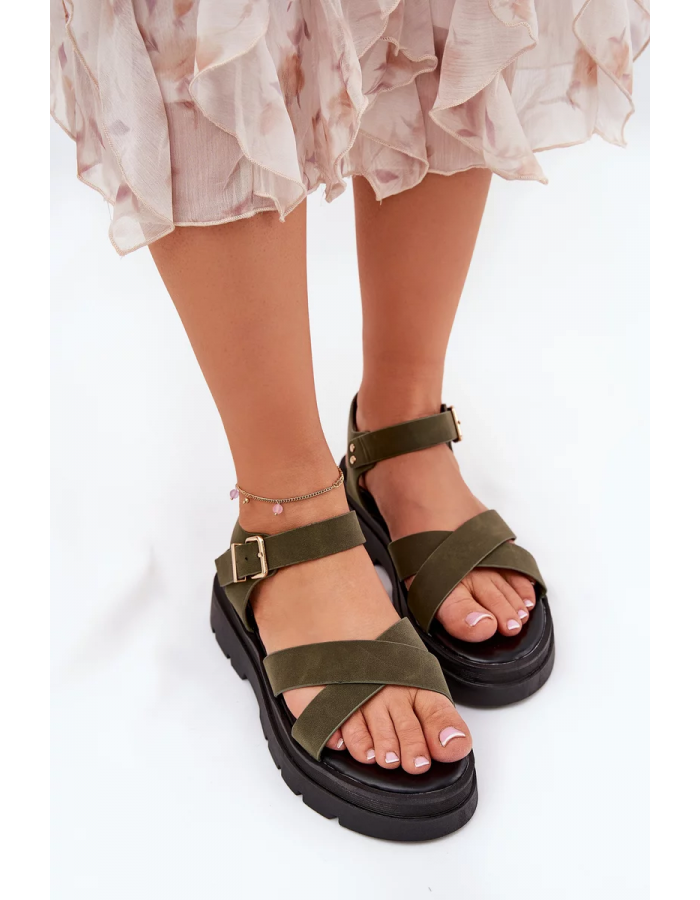 Tmavě zelené sandály na platformě krásně doplní outfity v neutrálních barvách a dodají jim originální akcent.