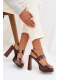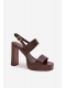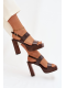 Čokoládové sandály na sloupku krásně doplní outfit v krémových, béžových nebo zlatavých tónech a podtrhnou elegantní letní styl.