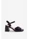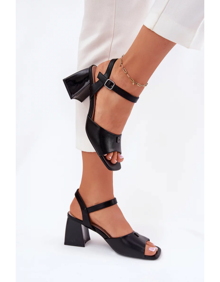 Černé sandály na sloupku skvěle doplní elegantní šaty, sukně i kalhotový kostým a dodají outfitu upravený vzhled.